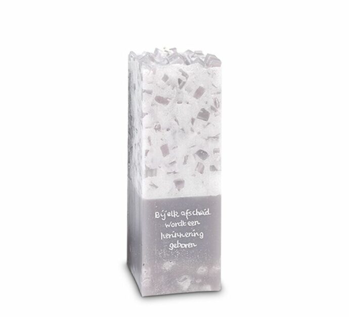 Terug Lichtgrijze kaars€99,00 – €140,00 incl. btw Beschrijving Moderne lichtgrijze kaars met opschrift. Brengt een warme sfeer in de rouwkamer, bij de uitvaart of thuis. Diverse hoopgevende opschriften, volgens beschikbaarheid. Geen bijkomende personalisatie of lint mogelijk. Naam Overledene * Kies de gewenste grootte Een optie kiezenSmallLargeSmallLargeWissen Toevoeging Ik wens graag een lint aan het bloemstuk Ik wens graag een kaartje bij het bloemstuk Tekst voor op het lint / kaartje Kwantiteit - + Volgende Andere suggesties… Donkergrijze kaars €99,00 – €140,00 incl. btw Bekijk Rouwboeket voor vaas €60,00 – €100,00 incl. btw HOOPVOLBekijk Taartje €35,00 – €50,00 incl. btw HOOPVOLBekijk