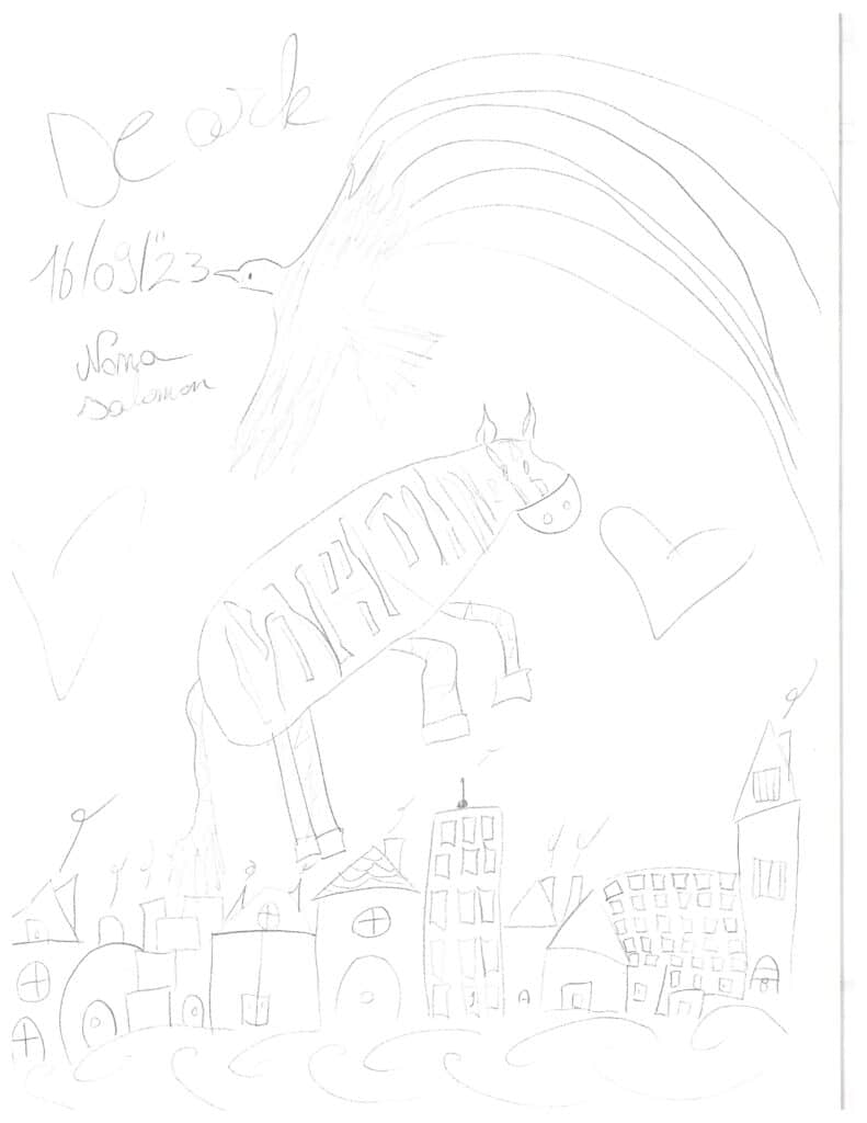 Op het einde van de rouwmaaltijd in de Ark bij de uitvaart van oma Paula, kregen onze medewerkers een hele mooie tekening van kleindochter Nona. Ze raakte geïnspireerd door het thema van de Ark met al zijn dieren om al tekenend en vertellend het verlies een plaats te geven en was dankbaar dat iedereen zo goed voor oma en het lekker eten gezorgd had. Ook voor kinderen is het belangrijk om het overlijden van een dierbare te plaatsen en op hun manier te rouwen, dat kan tijdens de rouwmaaltijd.