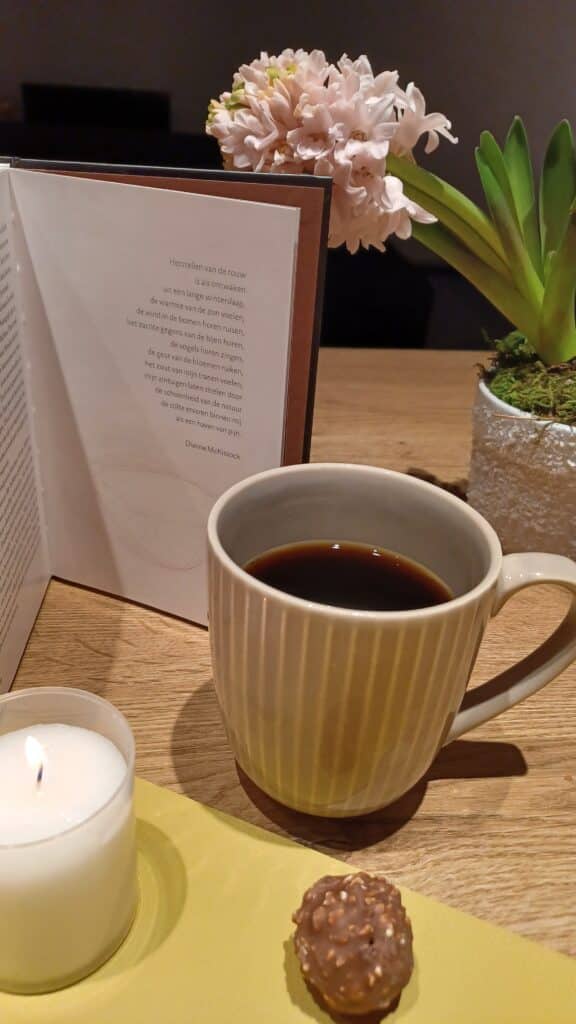 De poëzieweek staat dit jaar in het teken van het thema “thuis“. De plek waar vele verhalen geschreven worden, maar evenzeer een plek die niet meer hetzelfde is na een overlijden. Daarom delen we graag het gedicht van Dianne McKissock. Bij een kop koffie aan de keukentafel, alleen of bij een bezoekje, komen vaak warme herinneringen naar boven of worden de mooiste woorden gesproken. Laat je inspireren door dit gedicht om verder te gaan, om een nabestaande een bezoekje te brengen, om poëzie te delen … laat de woorden jou in beweging zetten om verder te gaan…