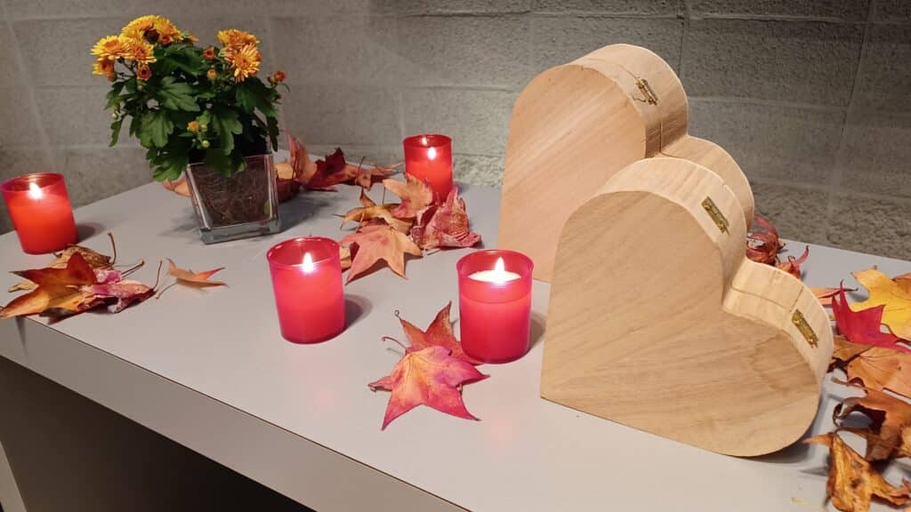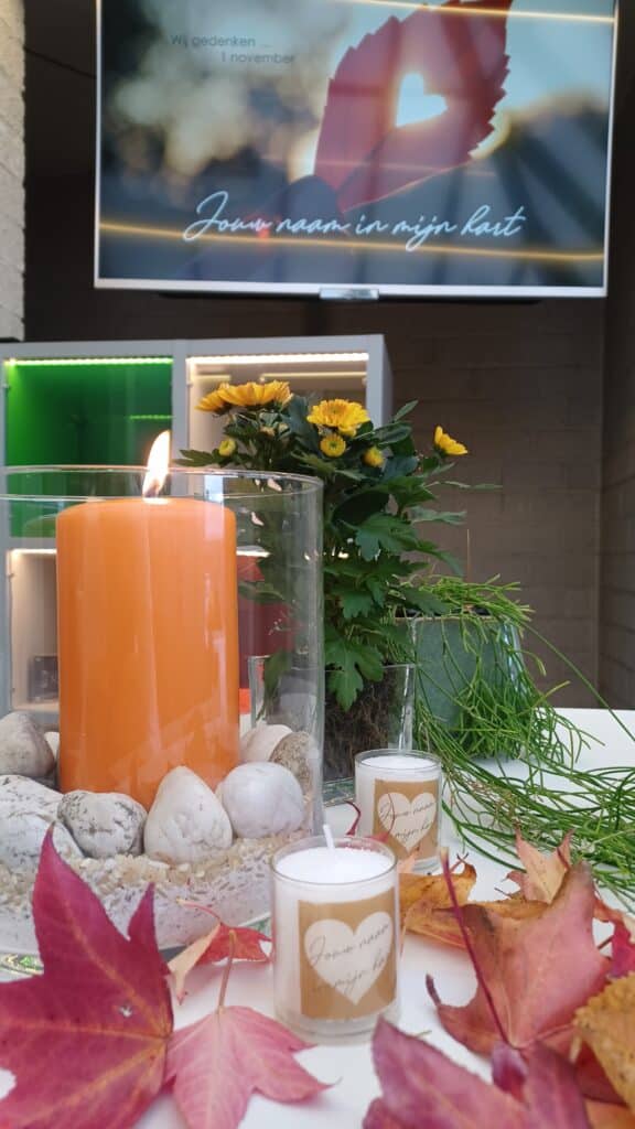Bedankt aan alle aanwezigen, we wensen jullie een deugddoende omhelzing om het afscheid te kunnen doorstaan en zijn dankbaar dat we jullie konden bijstaan op een moeilijk moment. Vandaag brandt een herdenkingskaarsje voor jullie dierbaren. Ook thuis bij de aanwezigen krijgen onze herdenkingskaarsjes vast een mooi plaatsje.