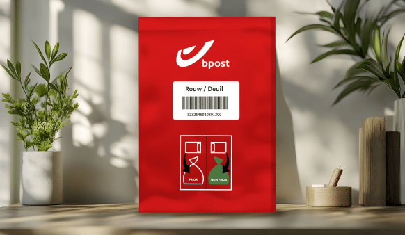 Bpost bezorgt het rouwdrukwerk met bijzondere zorg en aandacht.