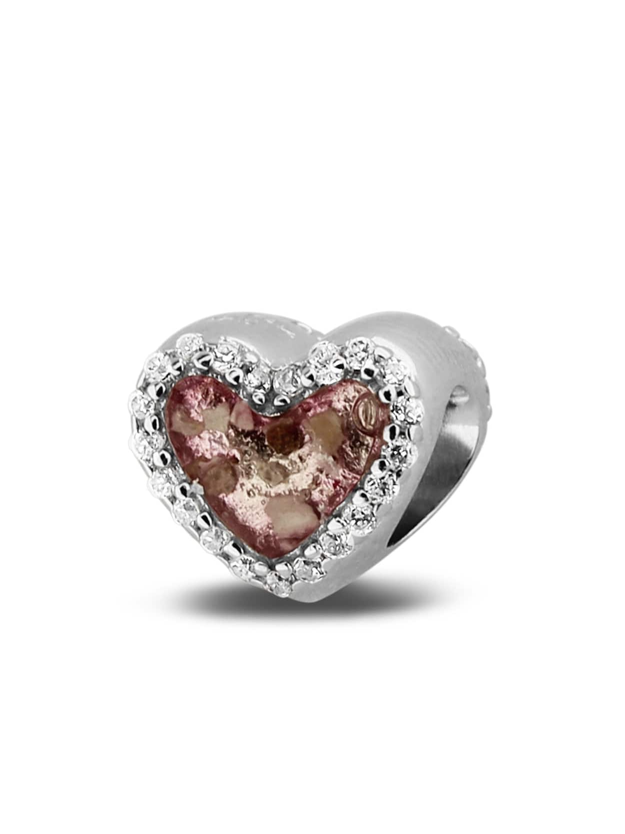 Bedel voor armband. Hart aan beide zijden afgewerkt met zirkonia. Bedels passen om elk gangbaar bedelmerk armband. Alle juwelen zijn verkrijgbaar in goud - prijs op aanvraag.