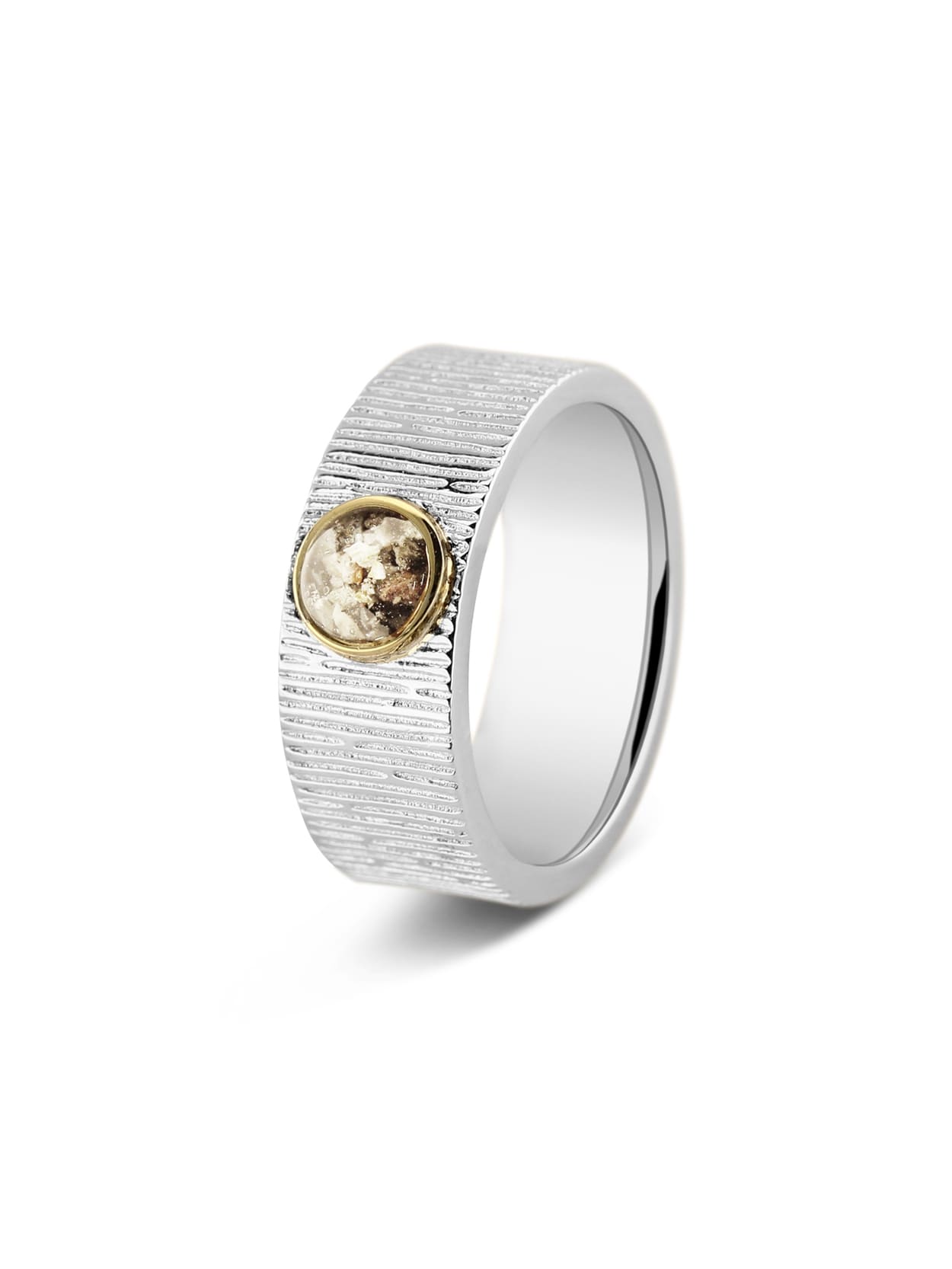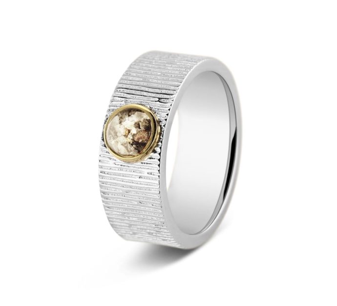 Terug Zilveren-gouden ring, prijs vanaf- afhankelijk van de goudprijs€275,00 incl. btw Asjuweel Kwantiteit - + Bestellen Beschrijving Ring 8 mm breed. Wanneer je deze ring bij ons besteld hebt, nemen wij contact met je op voor het opmeten van de juiste ringmaat. Supplement harsen €40,00: