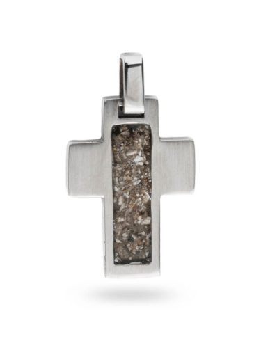 Zilveren hanger kruis. Dit sieraad wordt zichtbaar aan de voorkant gevuld met as of haar en wordt vermengd met een speciale hars.