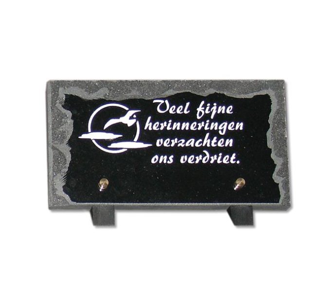 Onderaan het steentje kan gratis een plaatje bevestigd worden, waarop je een korte tekst kan neerschrijven (max. 30 karakters). Je kan deze woorden neerschrijven bij 'opmerkingen' aan het einde van de bestelling.